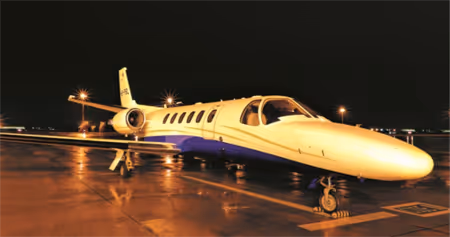 Citation Bravo is a midsize business jet designed and developed by Cessna Aircraft in the late '90s. It offers a reliable, high-performance solution for long-range travel between continents. Citation Bravo contains two Pratt & Whitney PW530A turbofan engines that produce 3,470 pounds of thrust each. This gives Citation Bravo the capability to reach a maximum operating altitude of 41,000 feet and make fast cross-country flights at 470 knots. In terms of flight control, Citation Bravo incorporates a fly-by-wire system that ensures pilots an unprecedented degree of accuracy and precision when making navigational adjustments. For cabin amenities Citation Bravo provides seating for up to nine passengers with generous storage space, along with 110 cubic feet dedicated cargo bay. Furthermore, Citation Bravo includes features such as airshow displays and satellite phone capabilities to ensure comfortable and luxurious flight experience wherever its travels take it.
