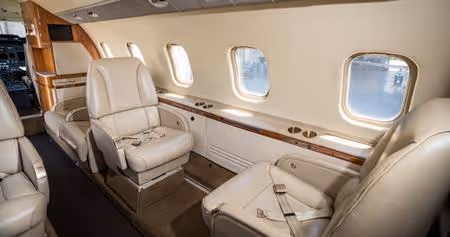 Learjet 60 is an efficient executive aircraft designed to provide exceptional performance and comfort. It is equipped with a reliable Pratt & Whitney 305A engine that delivers up to 4,500 pounds of thrust for fast climb and cruise speeds up to 530 mph. Learjet 60 also features advanced avionics such as Rockwell Collins Pro Line 21 integrated displays, synthetic vision system, radar altimetry, auto throttles, and dual flight management system with advanced navigation functions and worldwide databases. The Learjet 60 can accommodate 8 passengers in a spacious interior with generous baggage space and easy access storage closets. With its fuel efficiency and luxurious amenities, Learjet 60 is the perfect choice for cost-conscious business travel.