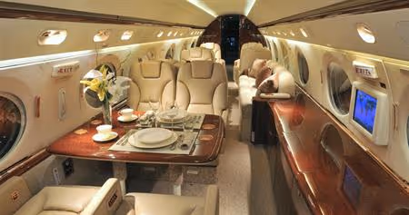 Gulfstream G-V airplanes are among the most luxurious business jets in service today. With the capability to travel up to 6,600 nautical miles nonstop, Gulfstream G-V planes offer unmatched speed and flexibility for those who need efficient transportation around the world. Gulfstream G-Vs can carry up to 16 passengers in total comfort - upholstered seating with plenty of legroom and a spacious cabin. As well as cutting-edge entertainment systems, Gulfstream G-V aircraft feature advanced avionics, such as an Enhanced Vision System (EVS) that helps pilots to ‘see’ obstacles during takeoff and landing in pitch dark conditions. Gulfstream G-V planes also have an Integrated Flight Information System which is designed to provide enhanced safety for every flight. With superior amenities and advanced technology, this ultra efficient private jet provides a truly incomparable flying experience.