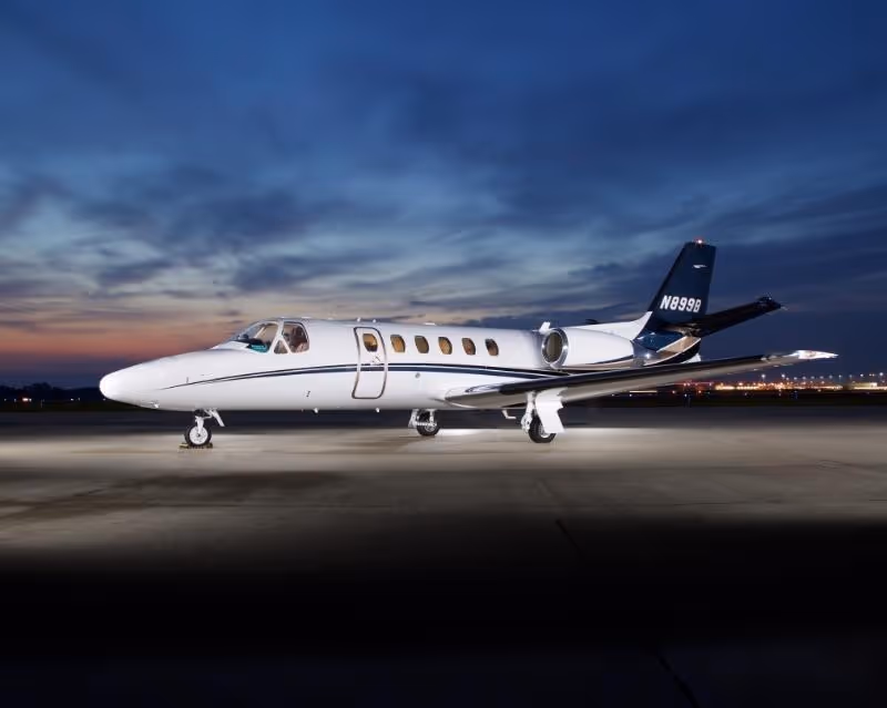 Citation Bravo is a midsize business jet designed and developed by Cessna Aircraft in the late '90s. It offers a reliable, high-performance solution for long-range travel between continents. Citation Bravo contains two Pratt & Whitney PW530A turbofan engines that produce 3,470 pounds of thrust each. This gives Citation Bravo the capability to reach a maximum operating altitude of 41,000 feet and make fast cross-country flights at 470 knots. In terms of flight control, Citation Bravo incorporates a fly-by-wire system that ensures pilots an unprecedented degree of accuracy and precision when making navigational adjustments. For cabin amenities Citation Bravo provides seating for up to nine passengers with generous storage space, along with 110 cubic feet dedicated cargo bay. Furthermore, Citation Bravo includes features such as airshow displays and satellite phone capabilities to ensure comfortable and luxurious flight experience wherever its travels take it.