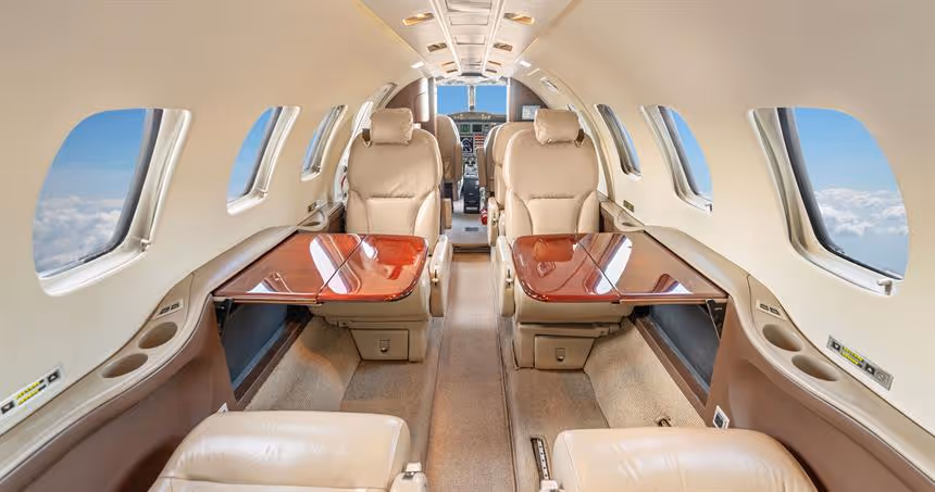 Citation Bravo is a midsize business jet designed and developed by Cessna Aircraft in the late '90s. It offers a reliable, high-performance solution for long-range travel between continents. Citation Bravo contains two Pratt & Whitney PW530A turbofan engines that produce 3,470 pounds of thrust each. This gives Citation Bravo the capability to reach a maximum operating altitude of 41,000 feet and make fast cross-country flights at 470 knots. In terms of flight control, Citation Bravo incorporates a fly-by-wire system that ensures pilots an unprecedented degree of accuracy and precision when making navigational adjustments. For cabin amenities Citation Bravo provides seating for up to nine passengers with generous storage space, along with 110 cubic feet dedicated cargo bay. Furthermore, Citation Bravo includes features such as airshow displays and satellite phone capabilities to ensure comfortable and luxurious flight experience wherever its travels take it.